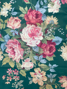Poetry of Flowers Fabric Collection. Garden Rose Bouquet. Green Background.