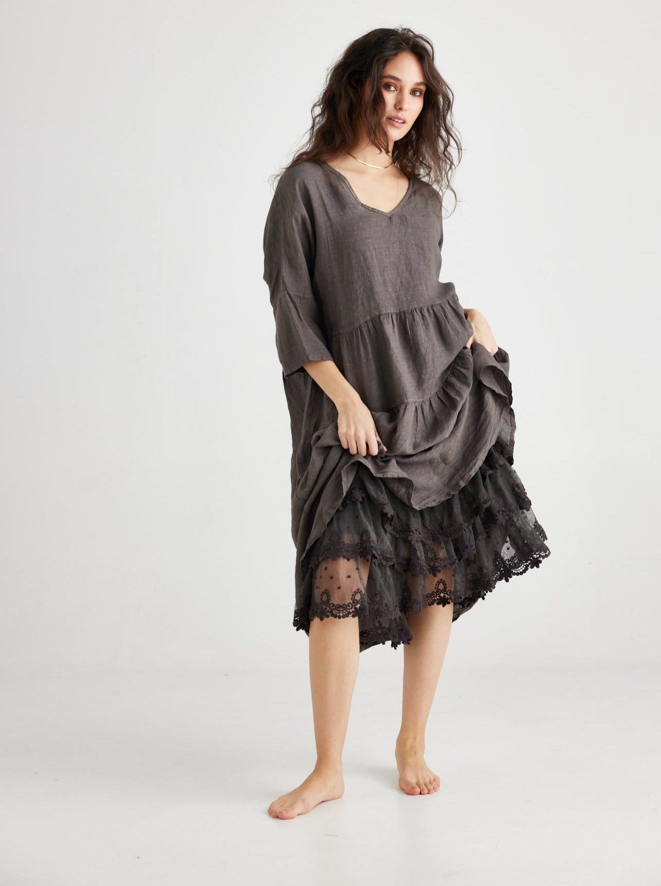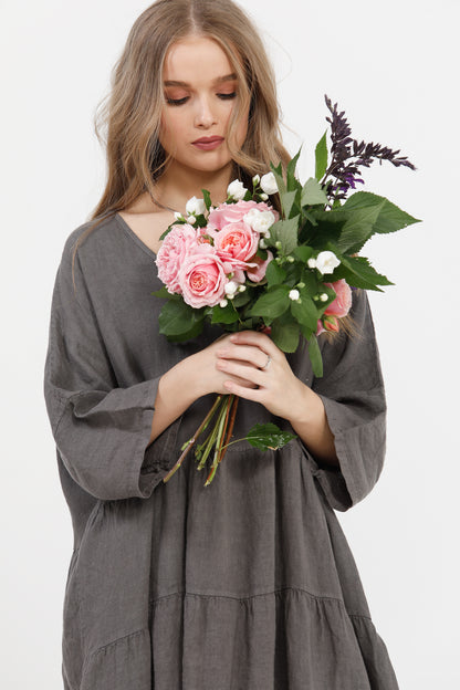 The Linen Stella is one of our most popular dresses ...tiered layers that form an A-line dress with a gorgeous flattering flare towards the bottom of the dress.